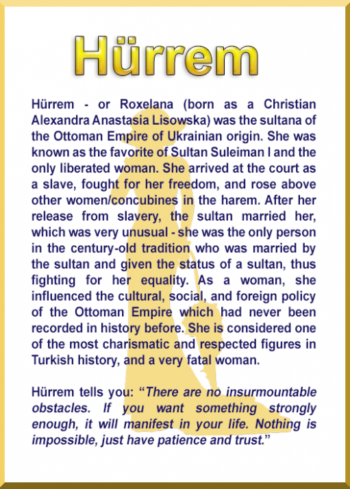 When something bothers you, close your eyes, calm your breathing, ask a question in your mind, and click on the cards and you will get an answer from legendry women. If you want to pick a new card, click Shuffle and then Pick a Card again!