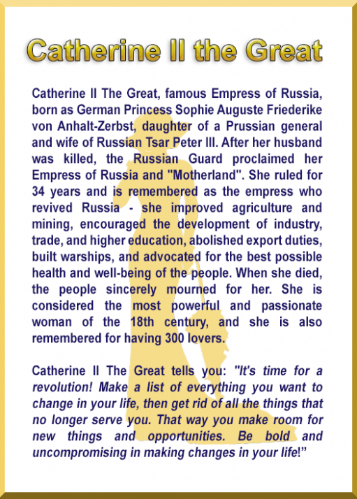 When something bothers you, close your eyes, calm your breathing, ask a question in your mind, and click on the cards and you will get an answer from legendry women. If you want to pick a new card, click Shuffle and then Pick a Card again!