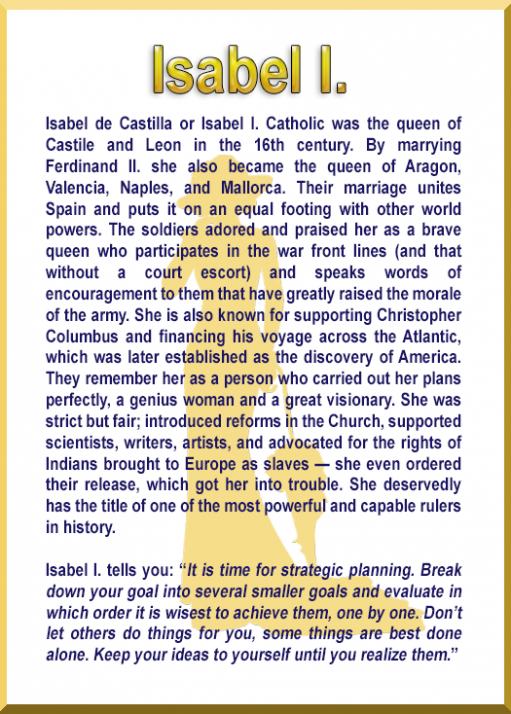 When something bothers you, close your eyes, calm your breathing, ask a question in your mind, and click on the cards and you will get an answer from legendry women. If you want to pick a new card, click Shuffle and then Pick a Card again!