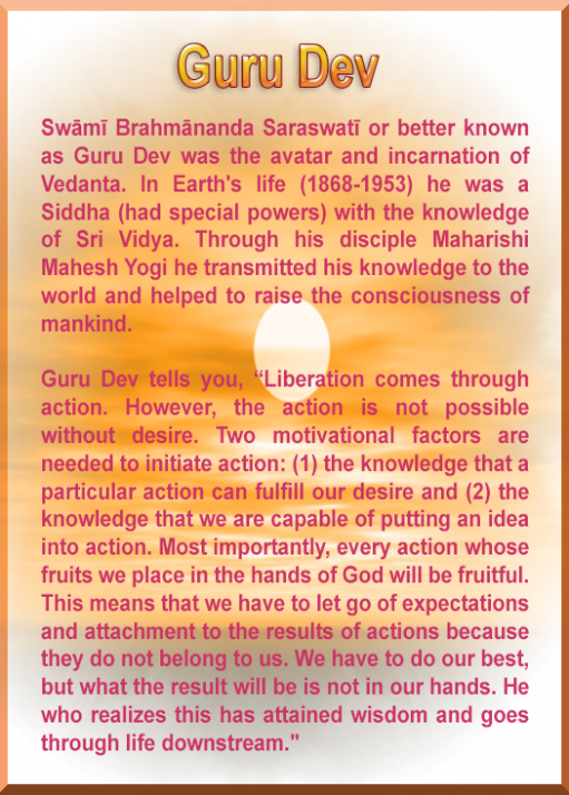 Avatar (Sanskrit: Avatāra = descendant from heaven) is the incarnation of a great (highly developed) soul who comes to Earth out of mercy towards humanity guided by compassion. Such a soul is free from Samsara and karma and after death goes back directly to the seventh plane of existence in the Brahma loka (God’s heavenly place), unless for some higher reason it chooses otherwise.